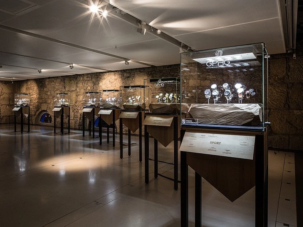 Working around the theme and techniques of watch-making conception, we proposed an immersive implementation, evoking the plots and mysteries of tools and expertise thus a selection of over 70 watches is displayed on massive wooden plinths, showing the natural marks of wood-work , a metaphor of the watch-maker ornementation with "Guilloche".